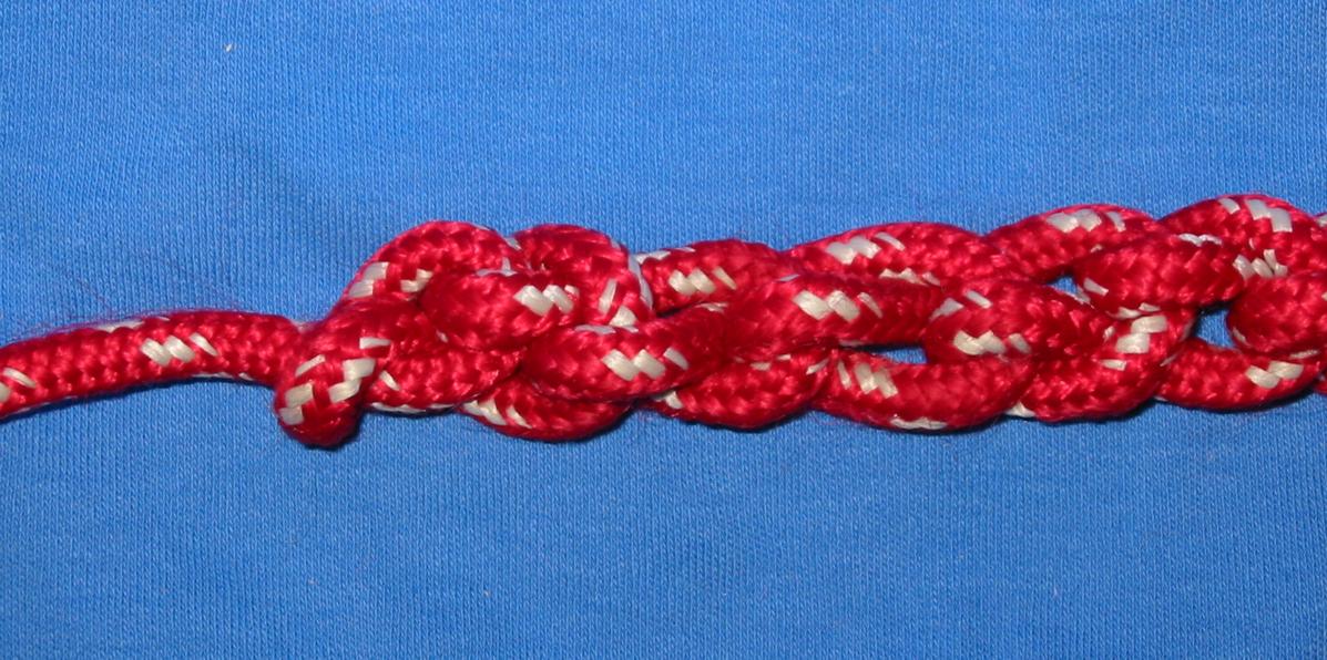 Step 1 - Start the initial overhand knot. Step 2 - Continue the overhand knot; pull the first loop through. Step 3 - Start the first chain-stitch knot. Step 4 - Continue the chain-stitch knots.