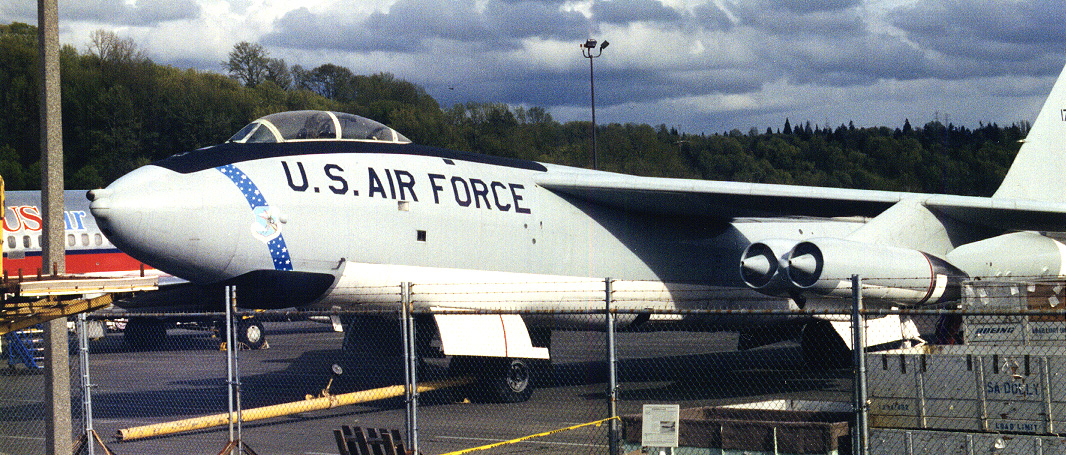 The tail number, 17066, indicates this plane is a B-47E built by Boeing and given the Air Force serial number 51-7066.