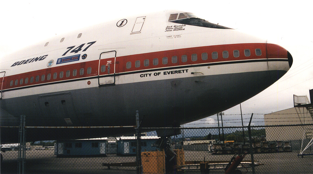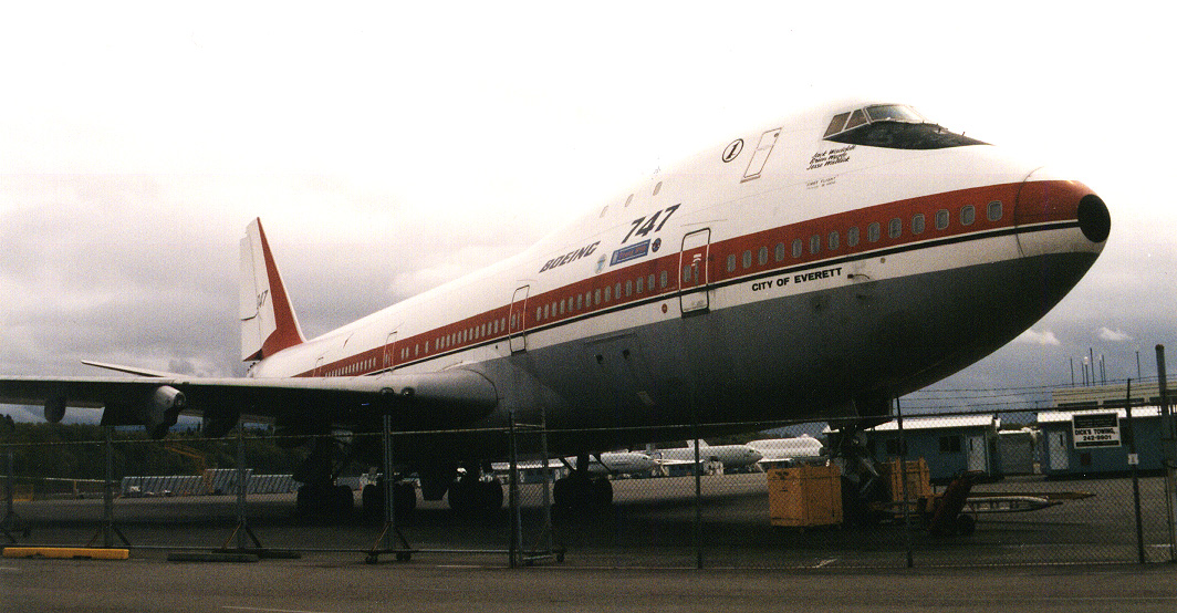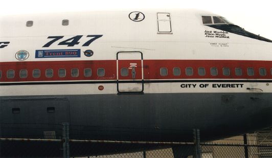 These photographs are of the Boeing 747 protoype, N7470, the "City of Everett". It is now owned by the Museum of Flight. Recently it was used to flight test the Pratt and Whitney PW8084 and Rolls Royce Trent-890 engines for the 777.