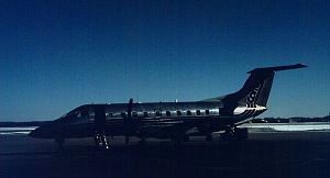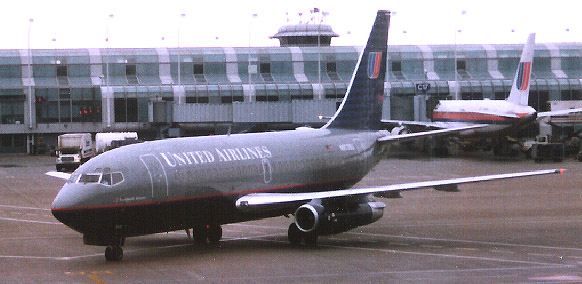 I think I took this picture while waiting for a flight out of Madison early one morning. The original slide retains more detail in shadows, and shows the flash off the tail more dramatically. I spent some time in the scanning software and PhotoShop trying to tweek the exposure, color-balance, and contrast to retain as much as I could: